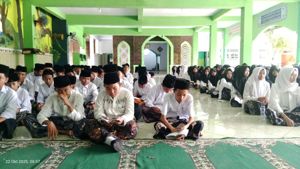 Gajah, 22 Oktober 2025 — Dalam rangka memperingati Hari Santri Nasional (HSN) Tahun 2025, keluarga besar MTs Al Irsyad Gajah turut ambil bagian dalam kegiatan nasional Pembacaan 1 Miliar Sholawat Nariyah yang dilaksanakan serentak di seluruh Indonesia. Kegiatan ini menjadi wujud cinta umat Islam, khususnya para santri, kepada Rasulullah SAW serta sebagai doa bersama untuk keselamatan bangsa dan kemajuan umat.