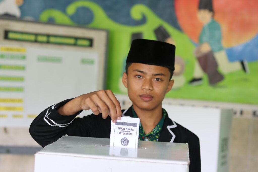 Proses pemungutan suara dilakukan secara langsung, umum, bebas, dan rahasia. Siswa bergantian memberikan suara sesuai pilihan masing-masing, sementara panitia mencatat dan mengawasi jalannya pemilihan agar berjalan jujur dan transparan.