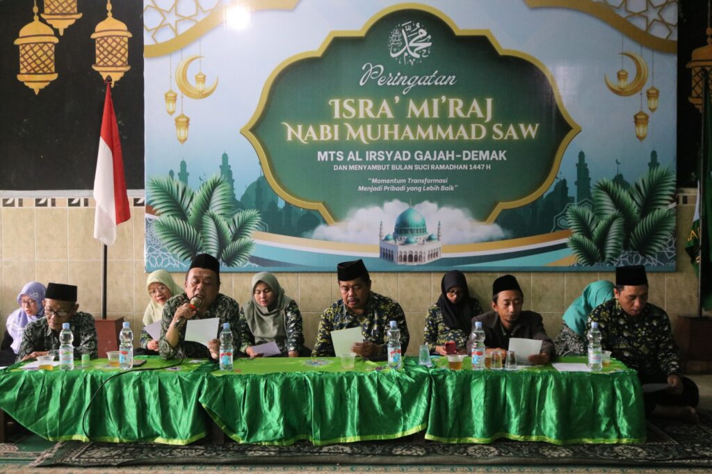 Suasana khidmat terasa ketika seluruh hadirin mengikuti rangkaian doa bersama yang dipanjatkan untuk kemajuan MTs Al Irsyad Gajah. Doa tersebut menjadi simbol harapan agar madrasah senantiasa diberi keberkahan, mampu melahirkan generasi berilmu, beriman, dan berdaya saing tinggi. Melalui peringatan Isra Mi’raj yang bertepatan dengan Hari Lahir madrasah ini, MTs Al Irsyad Gajah meneguhkan komitmennya untuk terus melangkah maju. Dengan menguatkan nilai keislaman dan meningkatkan mutu pendidikan, madrasah berharap dapat terus menjadi tempat tumbuhnya generasi unggul yang siap mengabdi untuk agama, bangsa, dan negara.